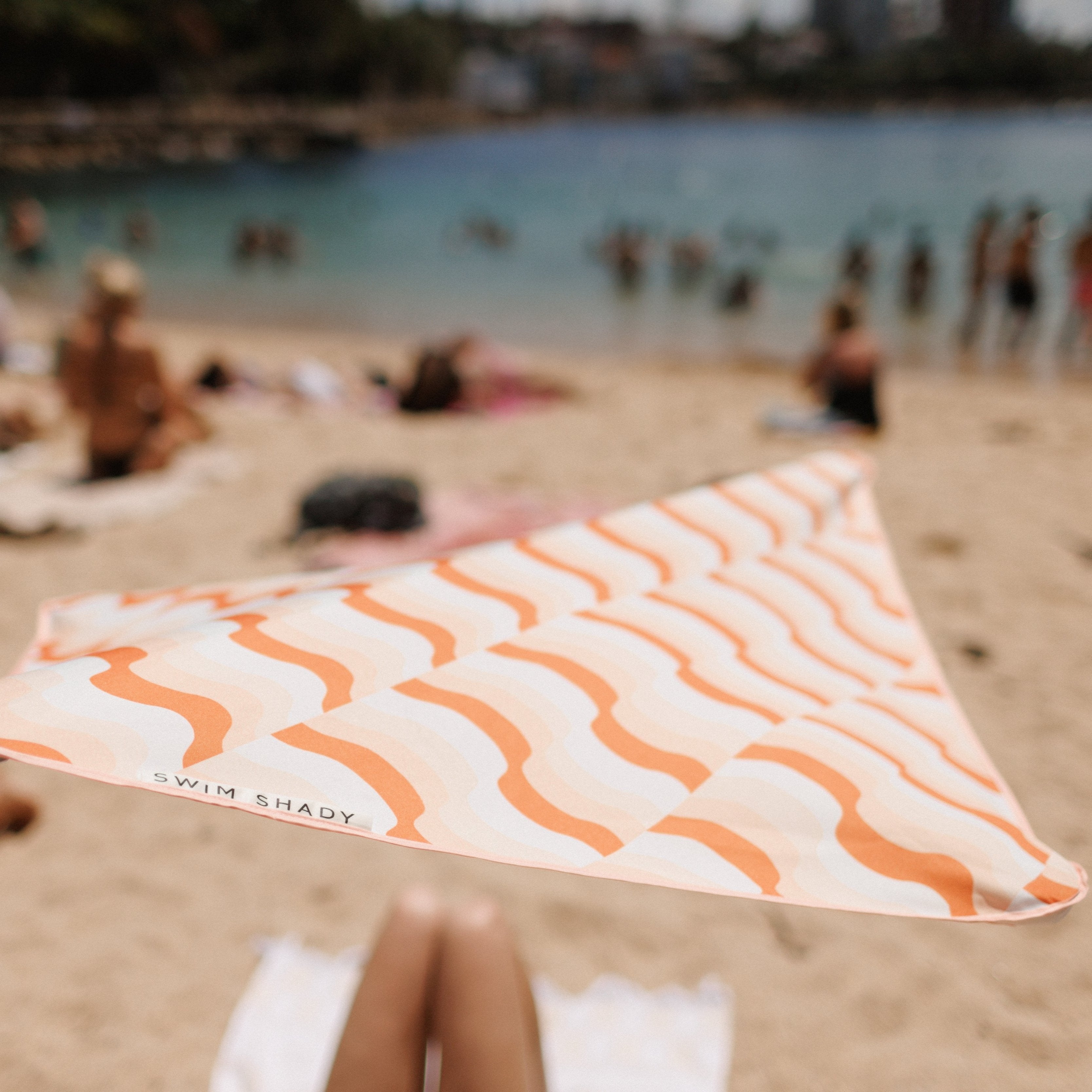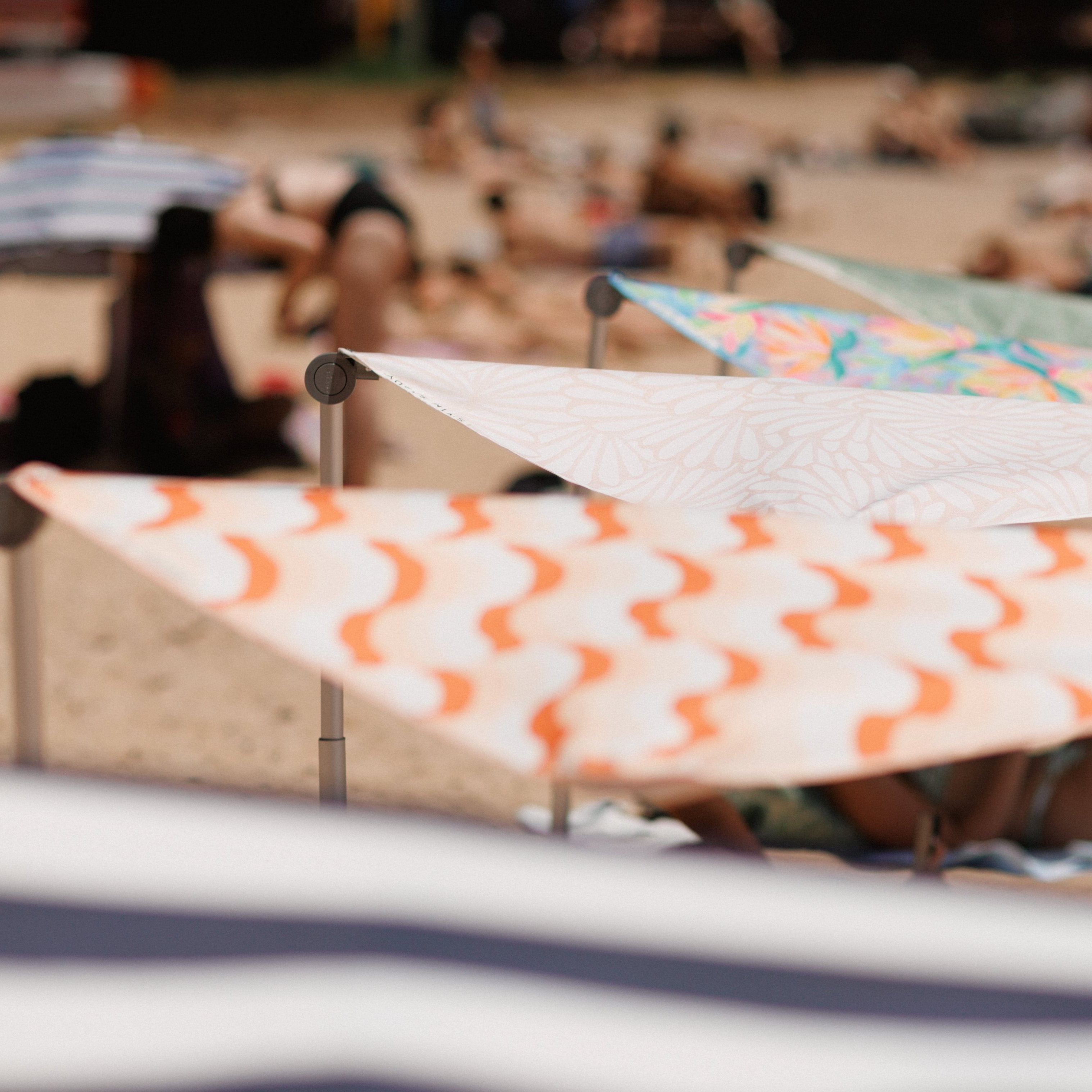 For those who love to make a statement, the Heat Swim Shady features a vibrant orange and white geo pattern that brings energy and excitement to the shore. This bold and eye-catching design is perfect for beachgoers who want their shade to reflect their lively and dynamic personality.